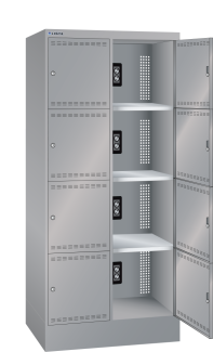 Akku-Ladeschrank mit Fächern (BxTxH) 810x585x1795mm 2x4 Fächer Typ CH 1x230V, 1xUSB-C KEY Lock Taubengrau NCS S 4502-B
