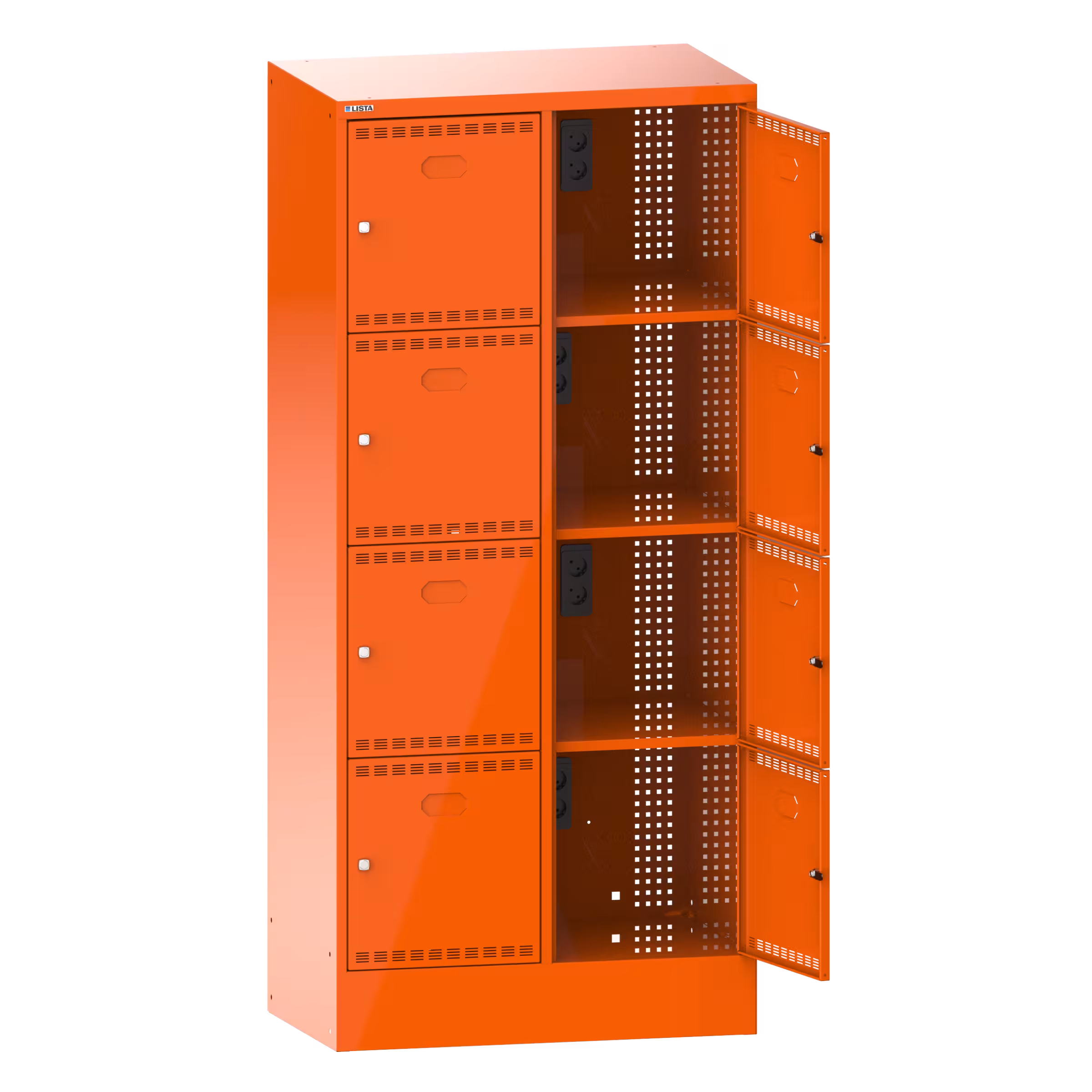 Akku-Ladeschrank mit Fächern (BxTxH) 810x585x1795mm 2x4 Fächer Typ CH 2x230V KEY Lock Orange RAL 2004