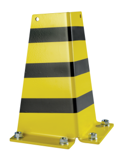 Anfahrschutz PC6: Sicherheitsvorrichtung zu exponierten Ständerrahmen. Mit 4 Löchern für die Bodenverankerung. Inklusive 4 Segmentanker M12 × 140 mm (Bohrlochtiefe 140 mm). Ausführung: Stahlblech, St 37-2. Farbe: Gelb/Schwarz.