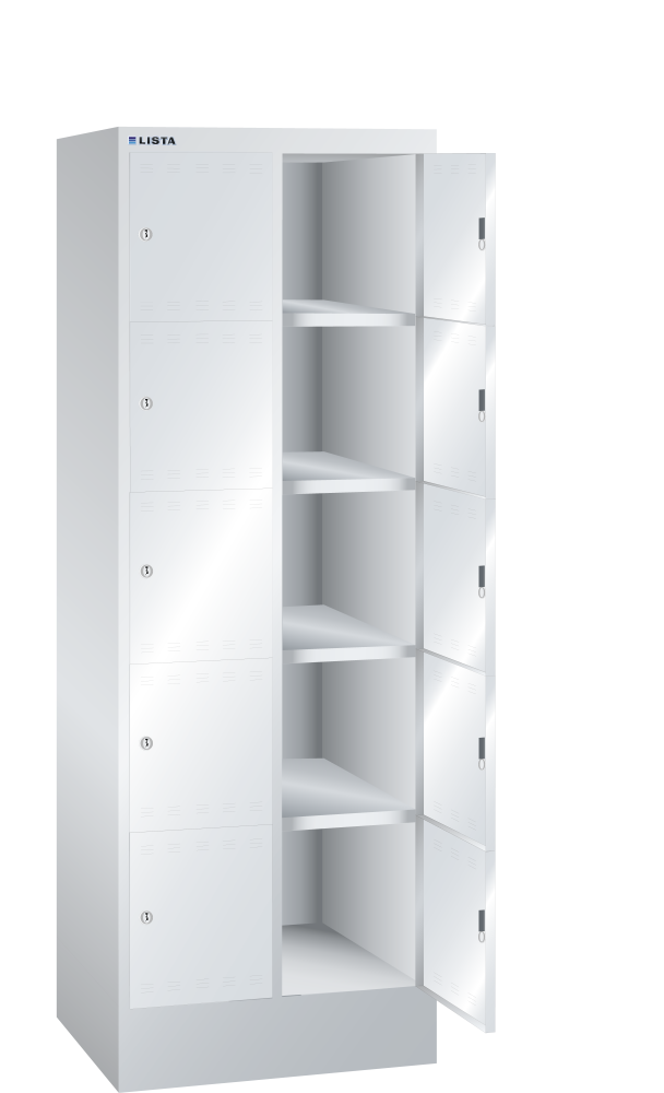 Fächerschrank (BxTxH) 610x500x1695mm 2x5 Fächer Sicherheits-Drehknopfverschluss Lichtgrau RAL 7035 / Reinweiss RAL 9010