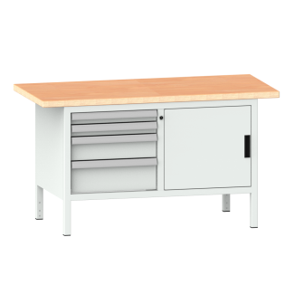 Kompaktwerkbank (BxTxH) 1500x700x840mm 1 Flügeltür, 2 Fachböden, 4 Schubladen, Multiplex KEY Lock Lichtgrau RAL 7035