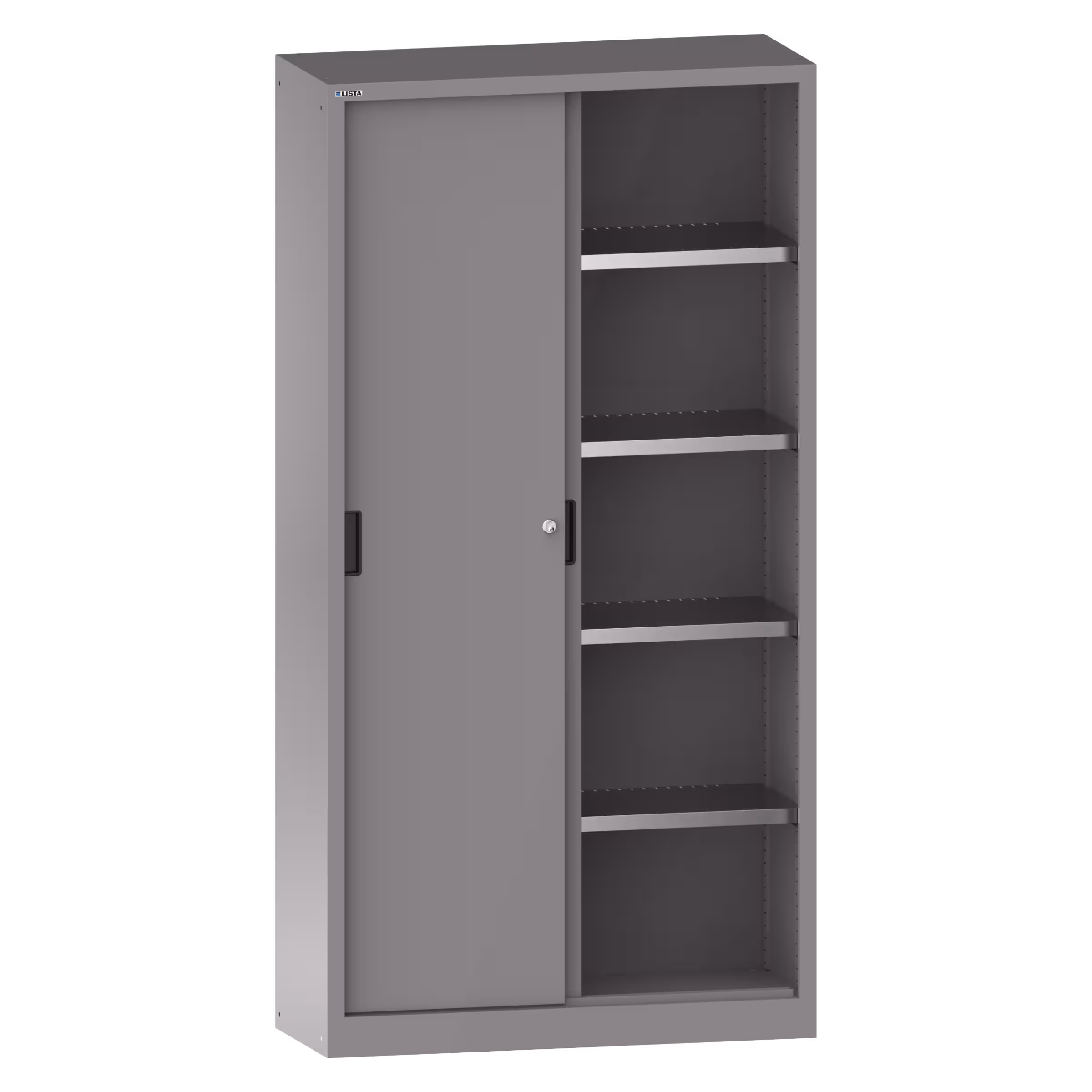 Schiebetürschrank mit 2 Vollblech-Türen (BxTxH) 1250x400x1950mm 4 Verstellböden KEY Lock Graualuminium RAL 9007