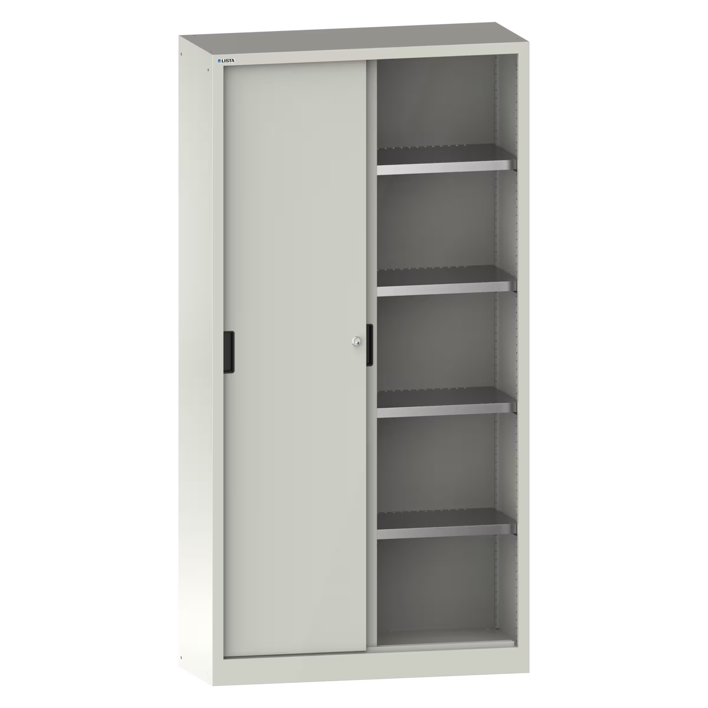 Schiebetürschrank mit 2 Vollblech-Türen (BxTxH) 1250x400x1950mm 4 Verstellböden KEY Lock Grauweiss RAL 9002