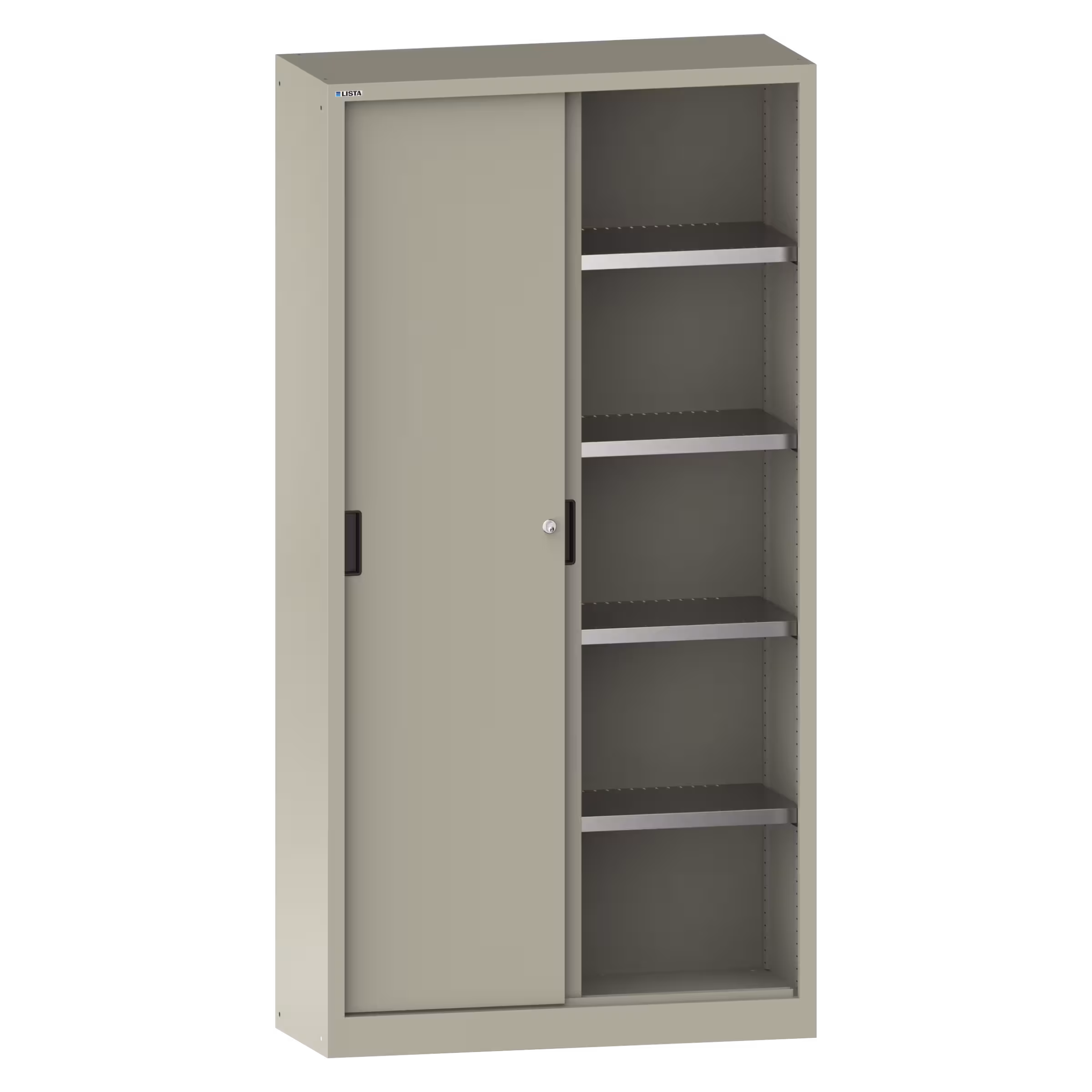 Schiebetürschrank mit 2 Vollblech-Türen (BxTxH) 1250x400x1950mm 4 Verstellböden KEY Lock Kieselgrau RAL 7032