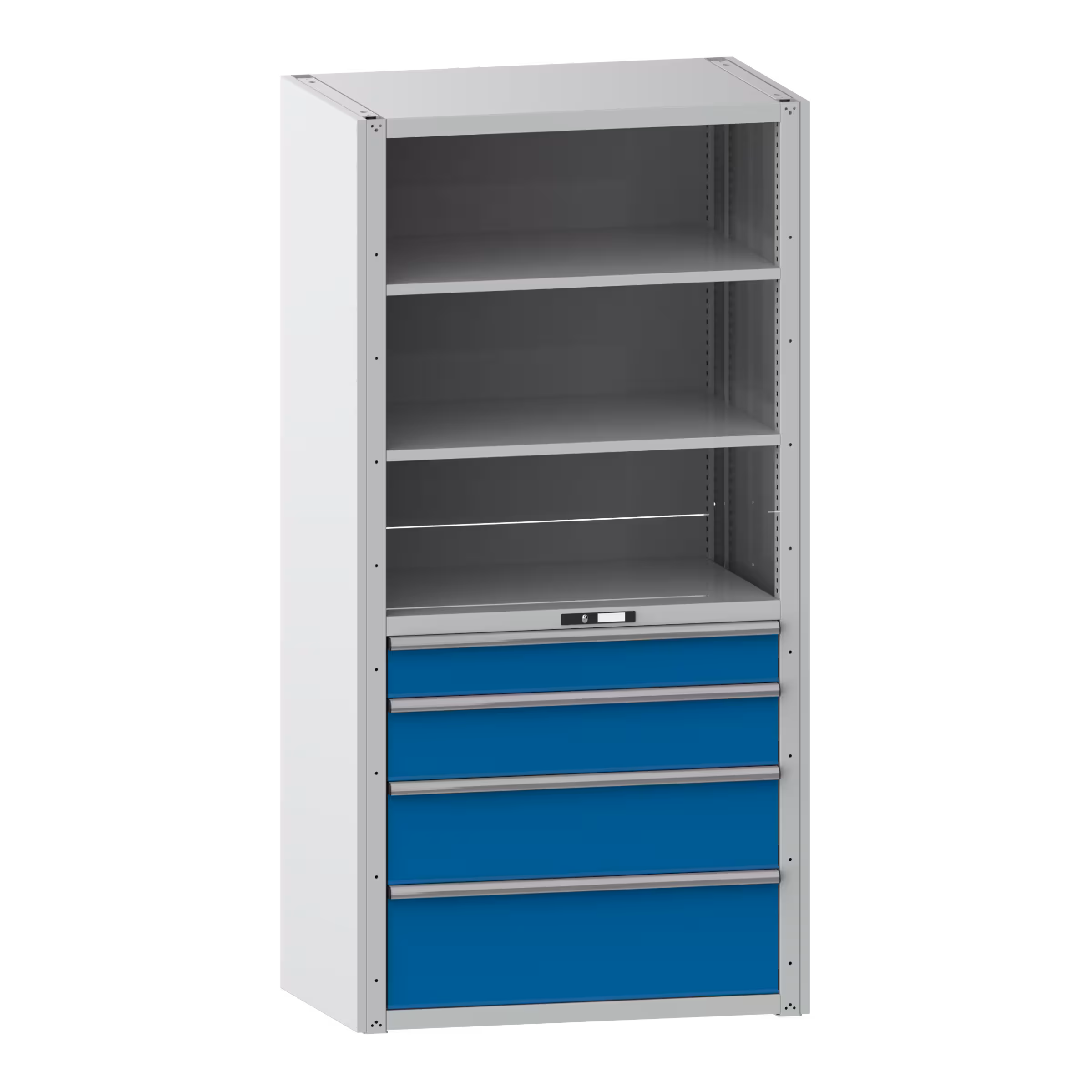 Schubladenregal Grundregal 54x36E (BxTxH) 1117x706x2200mm Lichtgrau RAL 7035 / Lichtblau RAL 5012