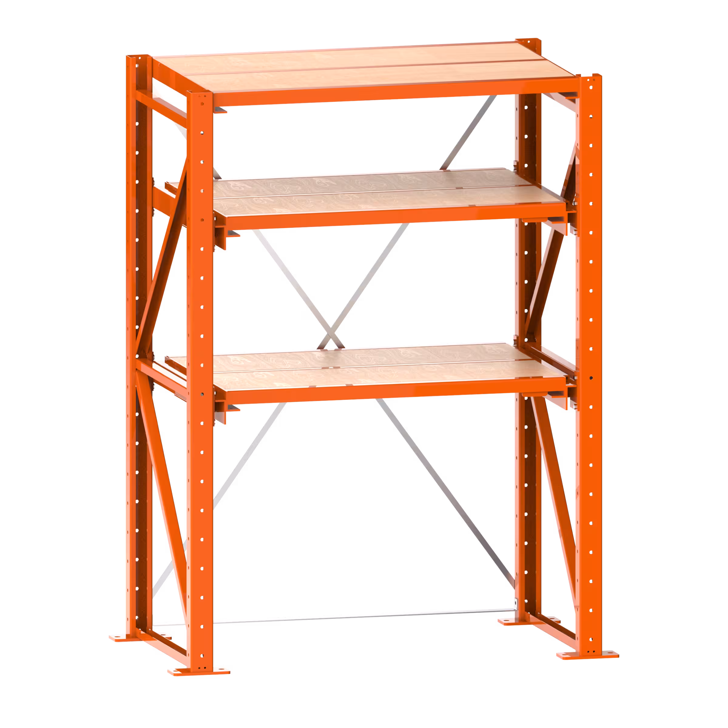 Schwerlast-Auszugregal Grundregal (BxTxH) 1290x1260x2000mm 1 Festrahmen, 2 Auszugrahmen (800kg) Orange RAL 2004