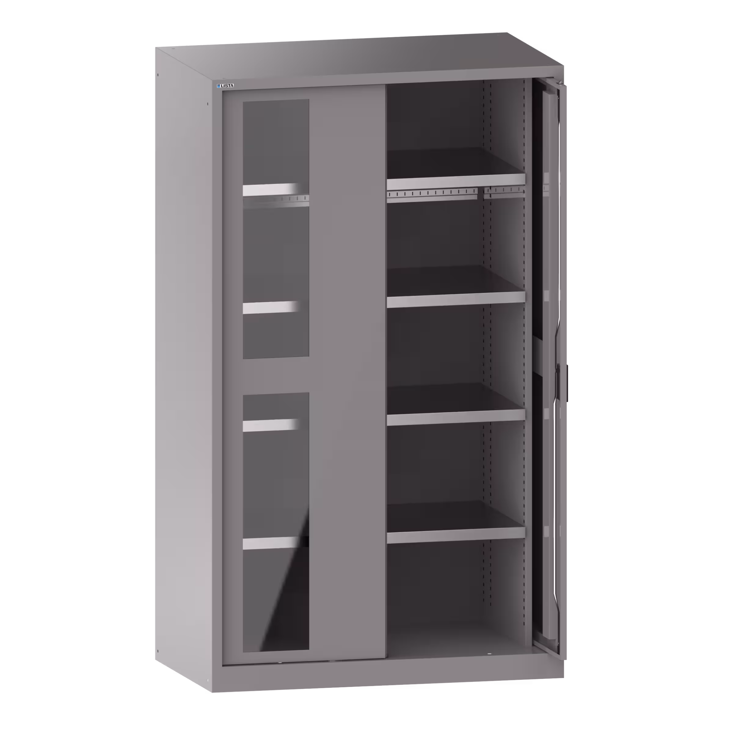 Schwerlastschrank mit 2 Sichtfenster-Einschwenktüren 54x27E (BxTxH) 1146x690x1950mm 4 Verstellböden CODE Lock Graualuminium RAL 9007