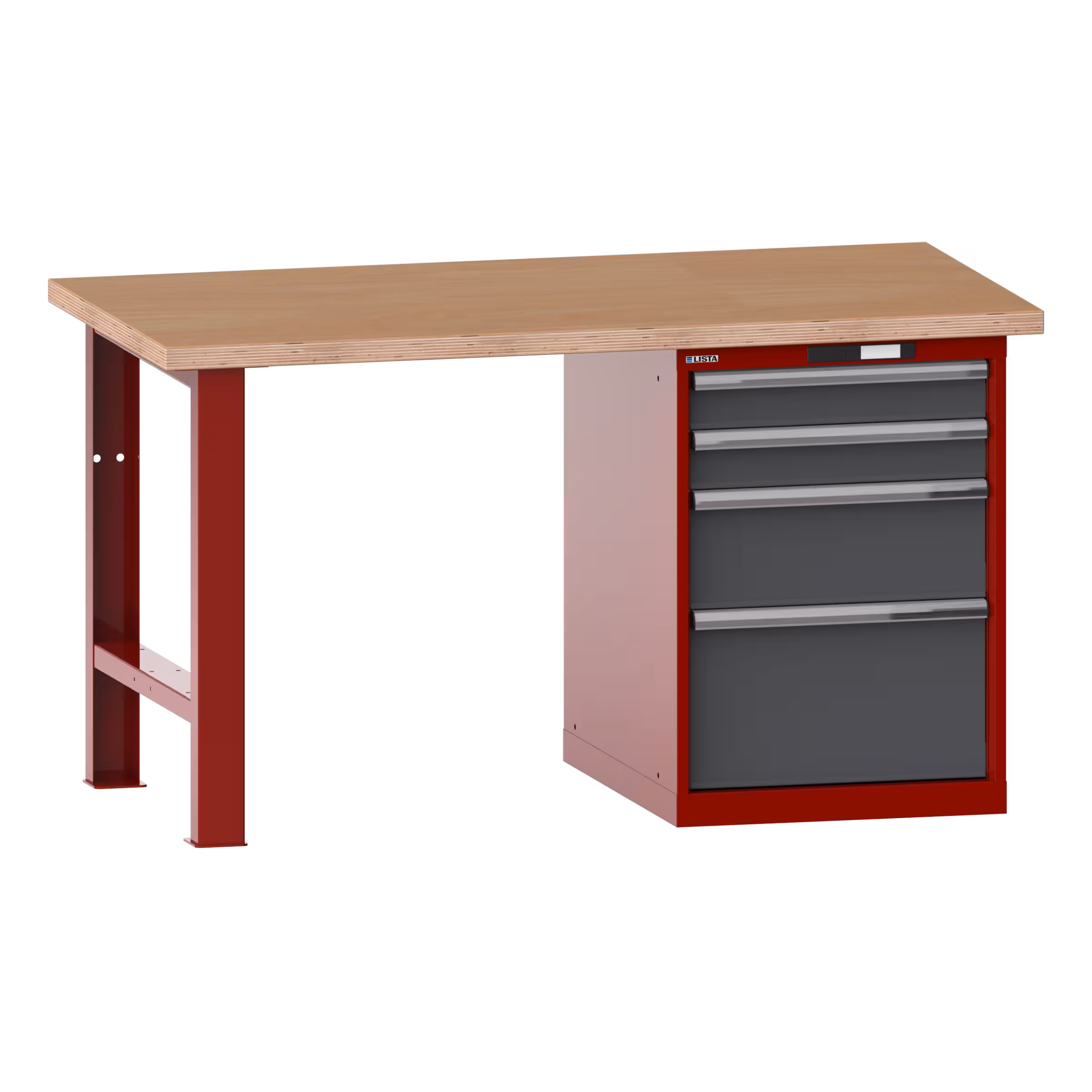 Werkbänke: Mit Multiplex- oder Buchenplatte inklusive Vormontage und Befestigungsmaterial. Schubladenschrank sowohl rechts als auch links montierbar.