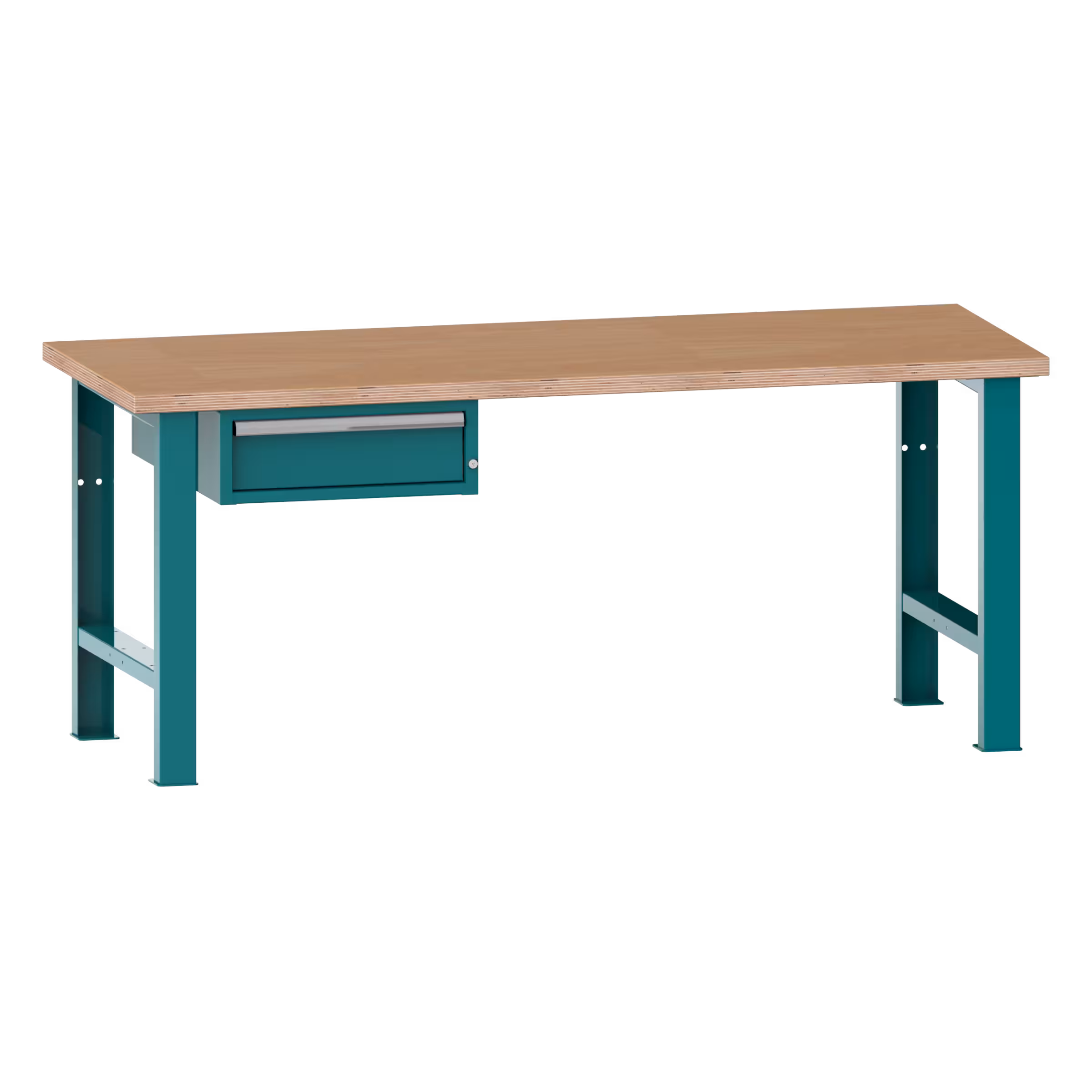 Werkbank 27x36E (BxTxH) 1500x750x840mm 1 Schublade (1x150) 75kg Multiplex KEY Lock Türkisblau RAL 5018