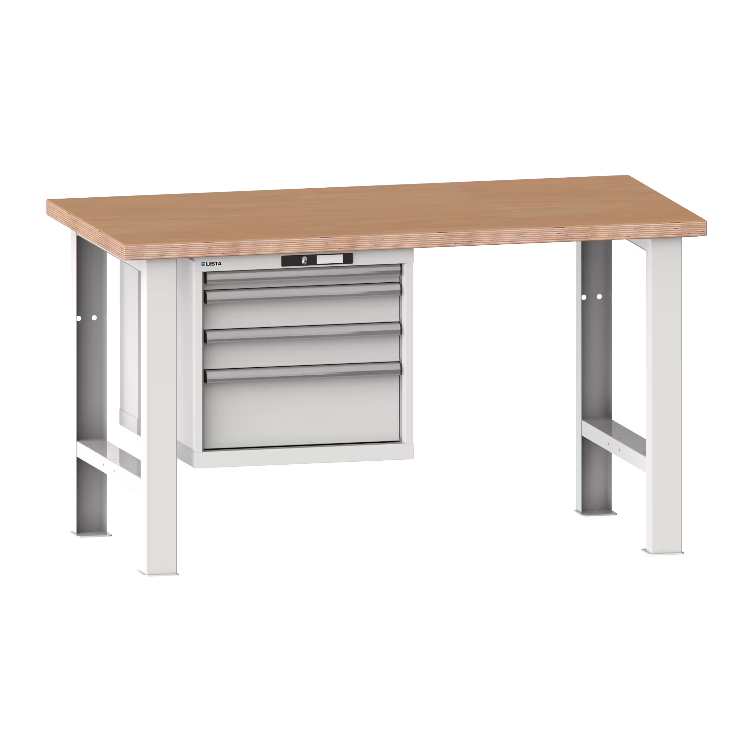 Werkbänke: Mit Multiplex- oder Buchenplatte inklusive Vormontage und Befestigungsmaterial. Schubladenschrank sowohl rechts als auch links montierbar.