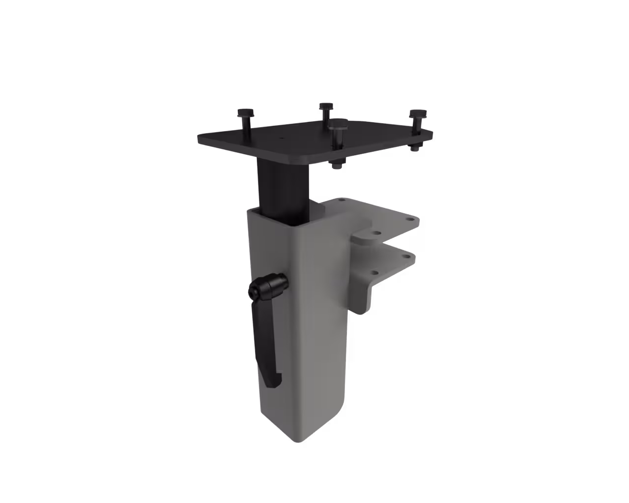 Système d'appareils de positionnement « Gressel » : appareils de positionnement réglables en continu, avec ressort à gaz amorti. Rotation sur 360°, blocage possible à l'aide d'un levier de serrage. Réglage de la hauteur : 55-215 mm, de la surface du plateau au plateau de l'étau. Matériau : construction soudée solide ; matériel de fixation fourni. Couleur : gris poussière, RAL 7037.