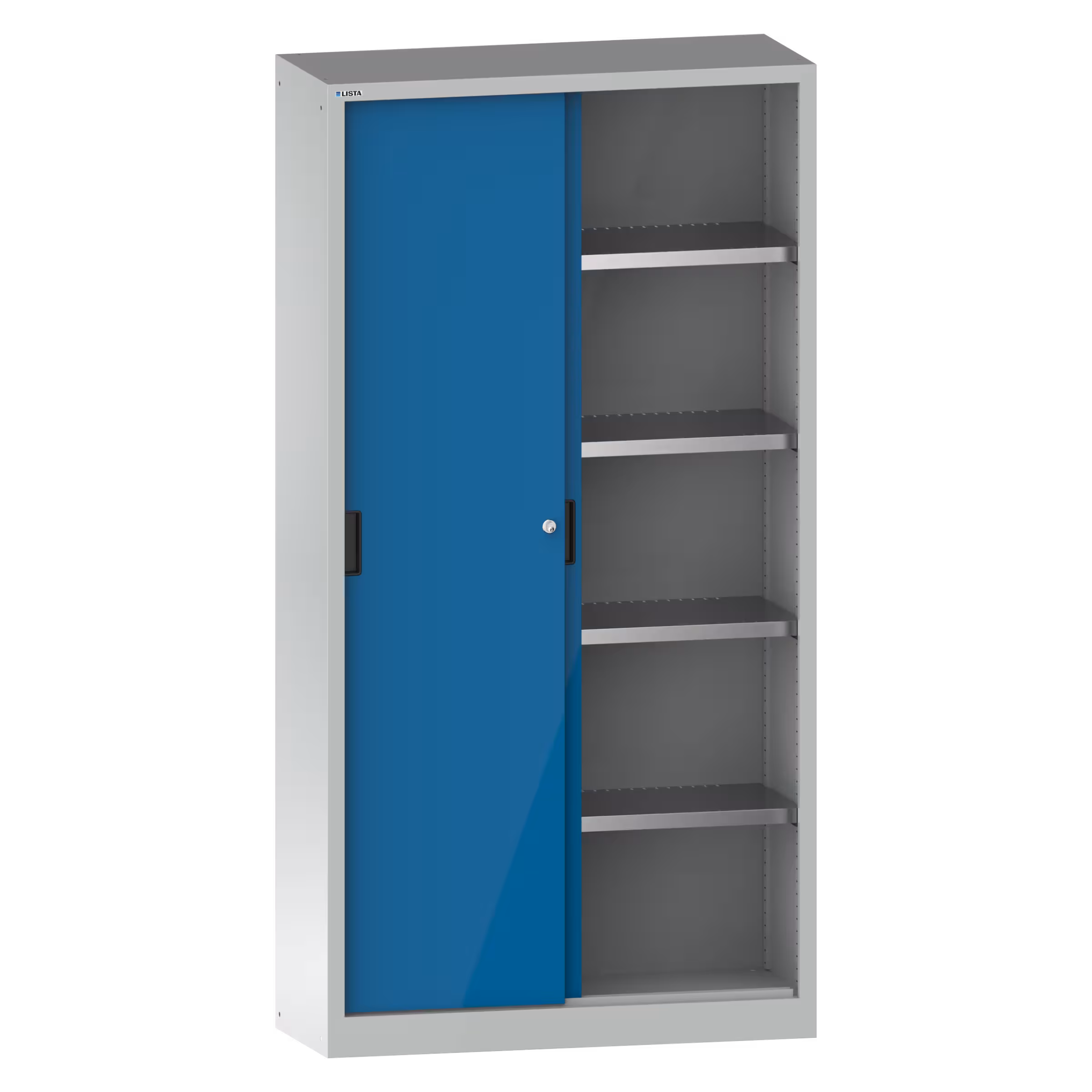 Armoire à portes coulissantes avec 2 portes en tôle pleine (LxPxH) 1250x400x1950mm 4 rayons KEY Lock Gris clair RAL 7035 / Bleu clair RAL 5012