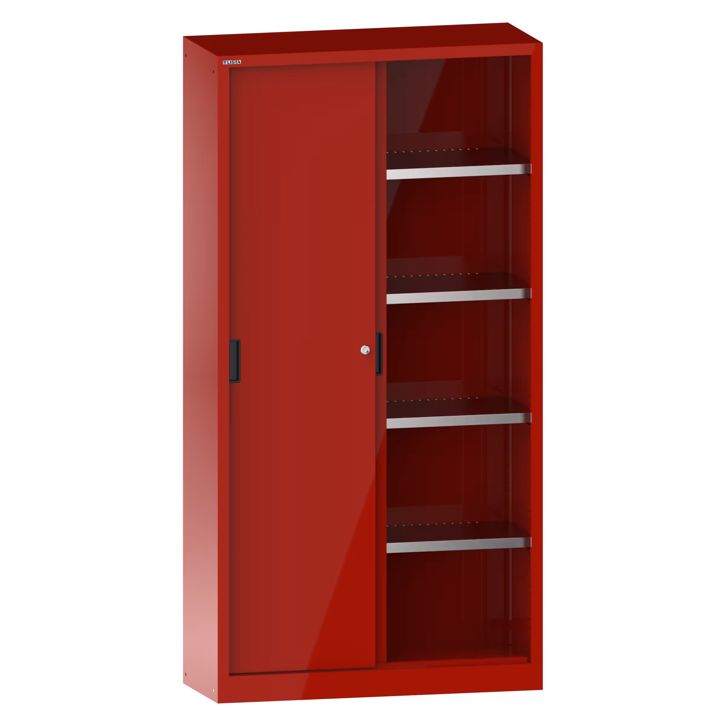 Armoire à portes coulissantes avec 2 portes en tôle pleine (LxPxH) 1250x400x1950mm 4 rayons KEY Lock Rouge feu RAL 3000