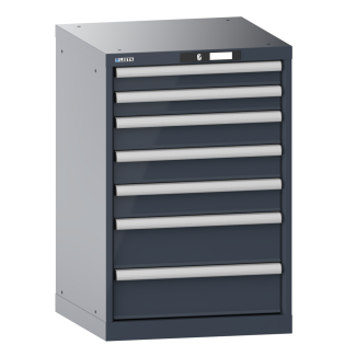 Armoire à tiroirs 27x27E (LxPxH) 564x572x850mm 7 tiroirs (2x75/3x100/2x150) 75kg KEY Lock Gris ardoise RAL 7015