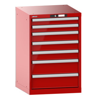 Armoire à tiroirs 27x27E (LxPxH) 564x572x850mm 7 tiroirs (2x75/3x100/2x150) 75kg KEY Lock Rouge feu RAL 3000