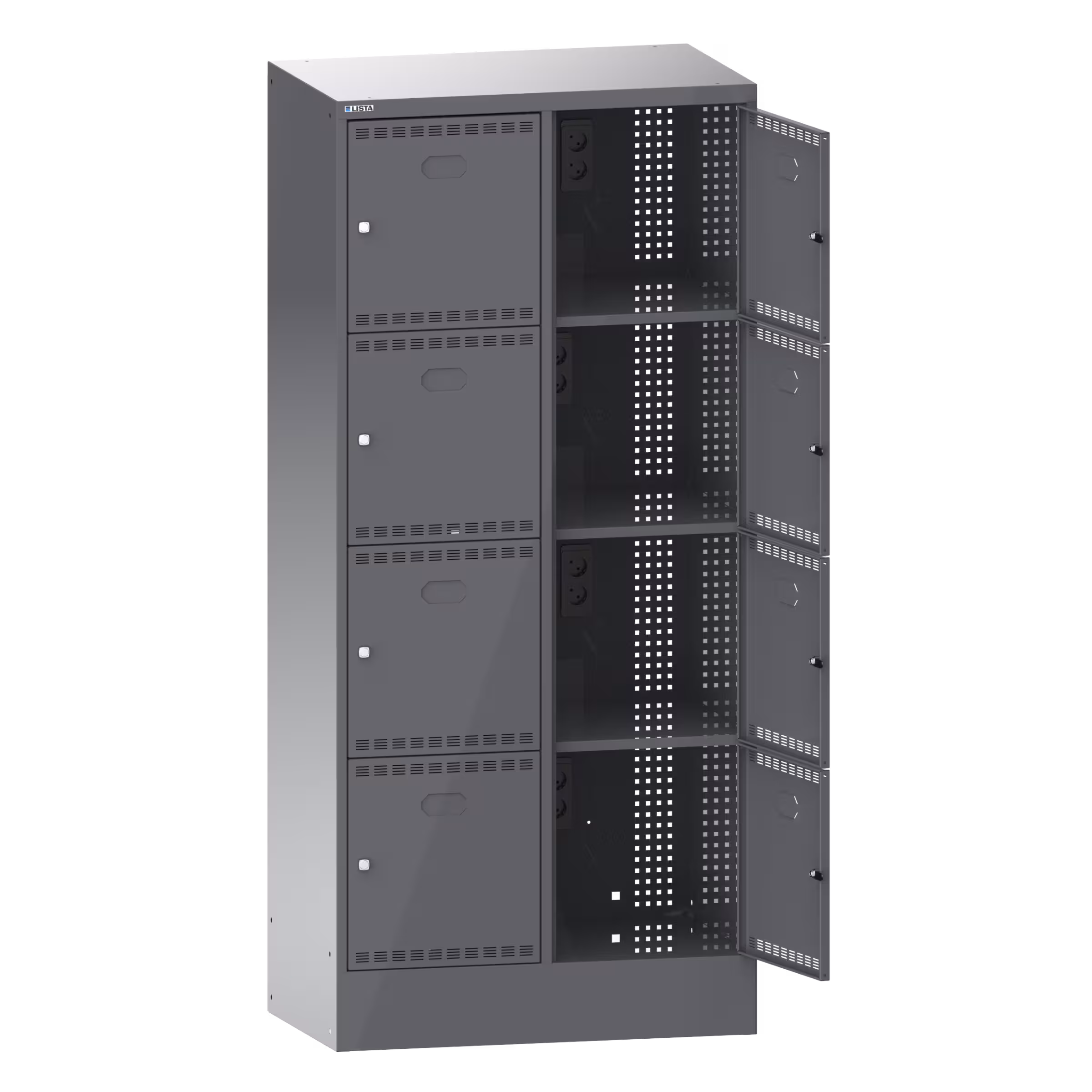 Armoire de charge de batterie avec casiers (LxPxH) 810x585x1795mm 2x4 casiers Type CH 2x230V KEY Lock Gris métallique NCS S 6502-B