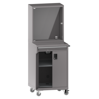 1 casier pour moniteur avec porte battante montée à droite, avec cylindre de fermeture,