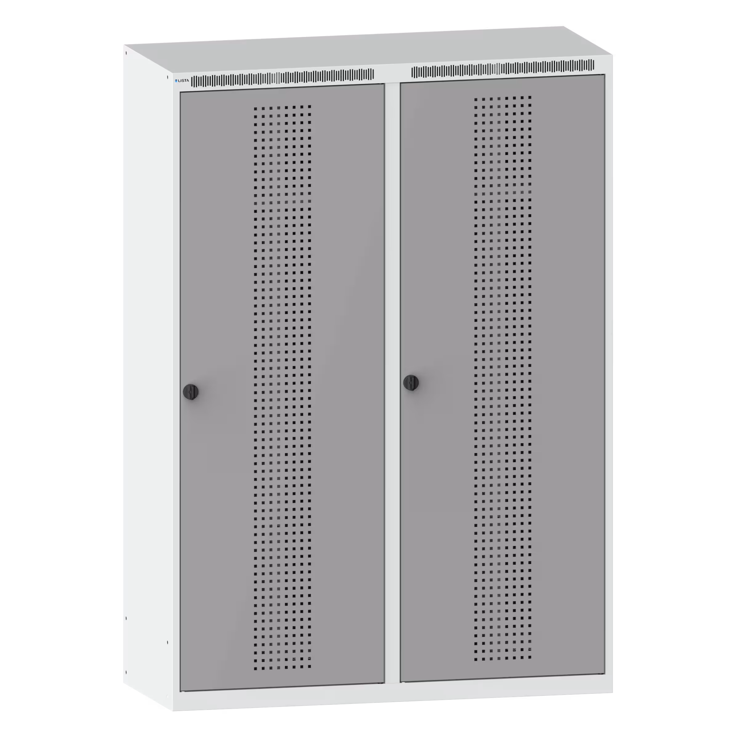 Armoire-vestiaire (LxPxH) 1200x500x1700mm 4 compartiments sans infrastructure, porte perforée, fermeture de sécurité à bouton rotatif Gris clair RAL 7035 / Aluminium blanc RAL 9006