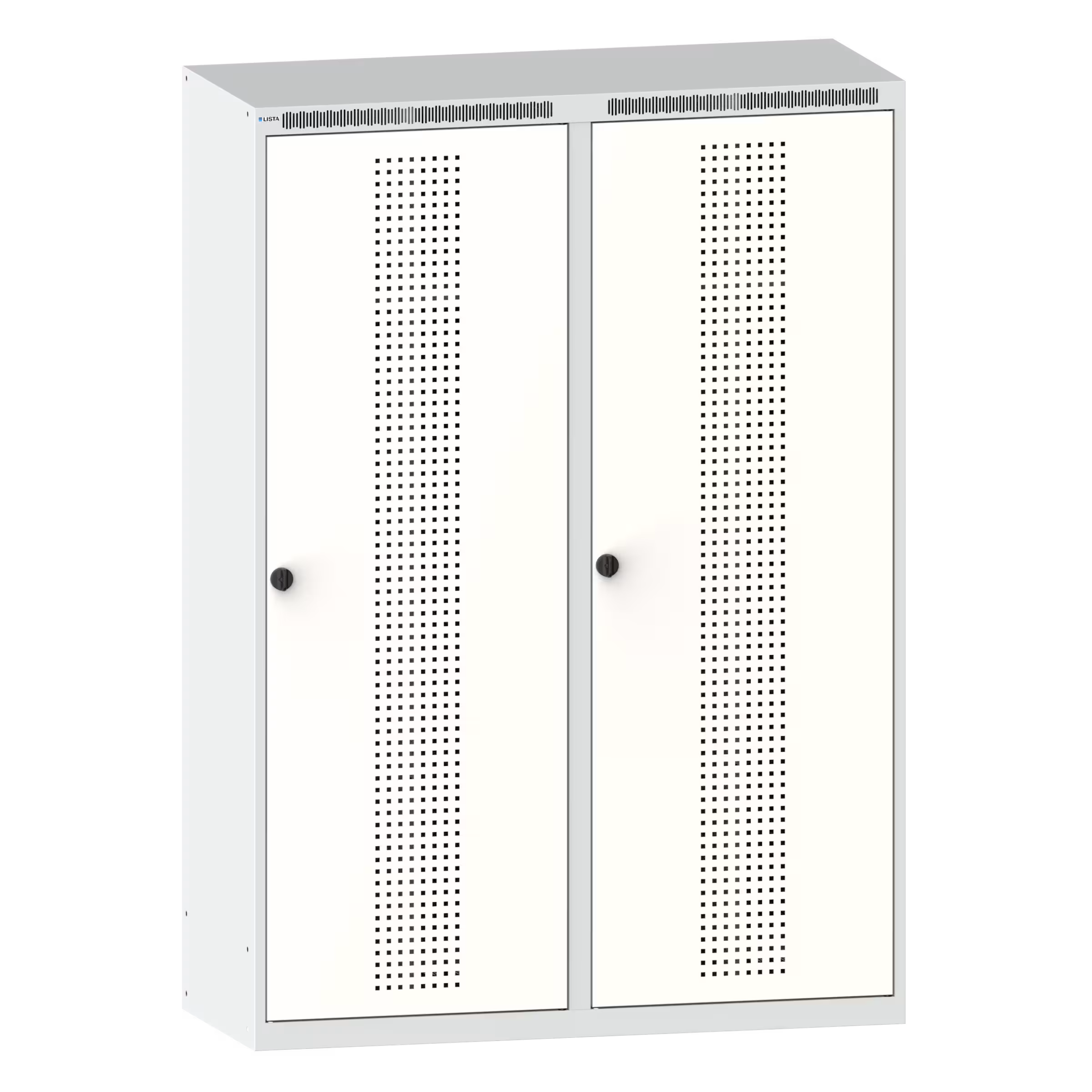 Armoire-vestiaire (LxPxH) 1200x500x1700mm 4 compartiments sans infrastructure, porte perforée, fermeture de sécurité à bouton rotatif Gris clair RAL 7035 / Blanc pur RAL 9010