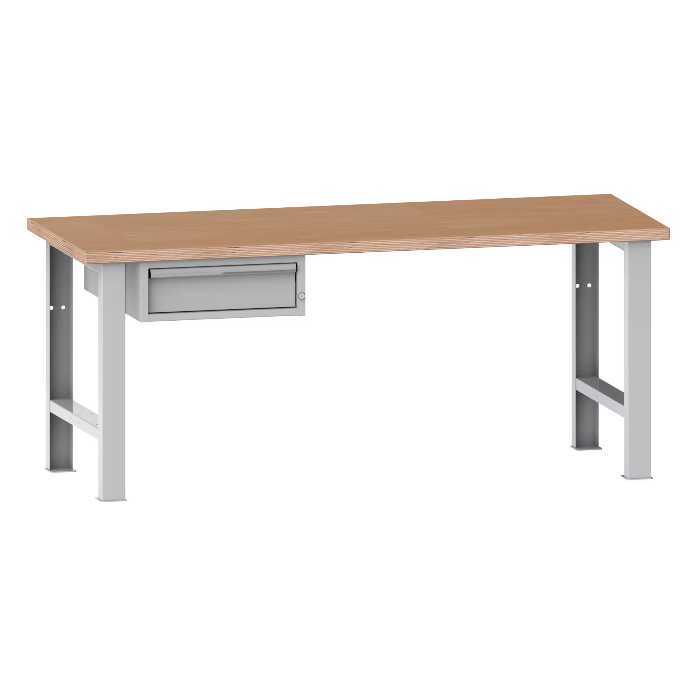 grâce aux plateaux d'établi dotés de pré-perçages avec douilles pour la fixation de toutes les infrastructures et armoires à tiroirs