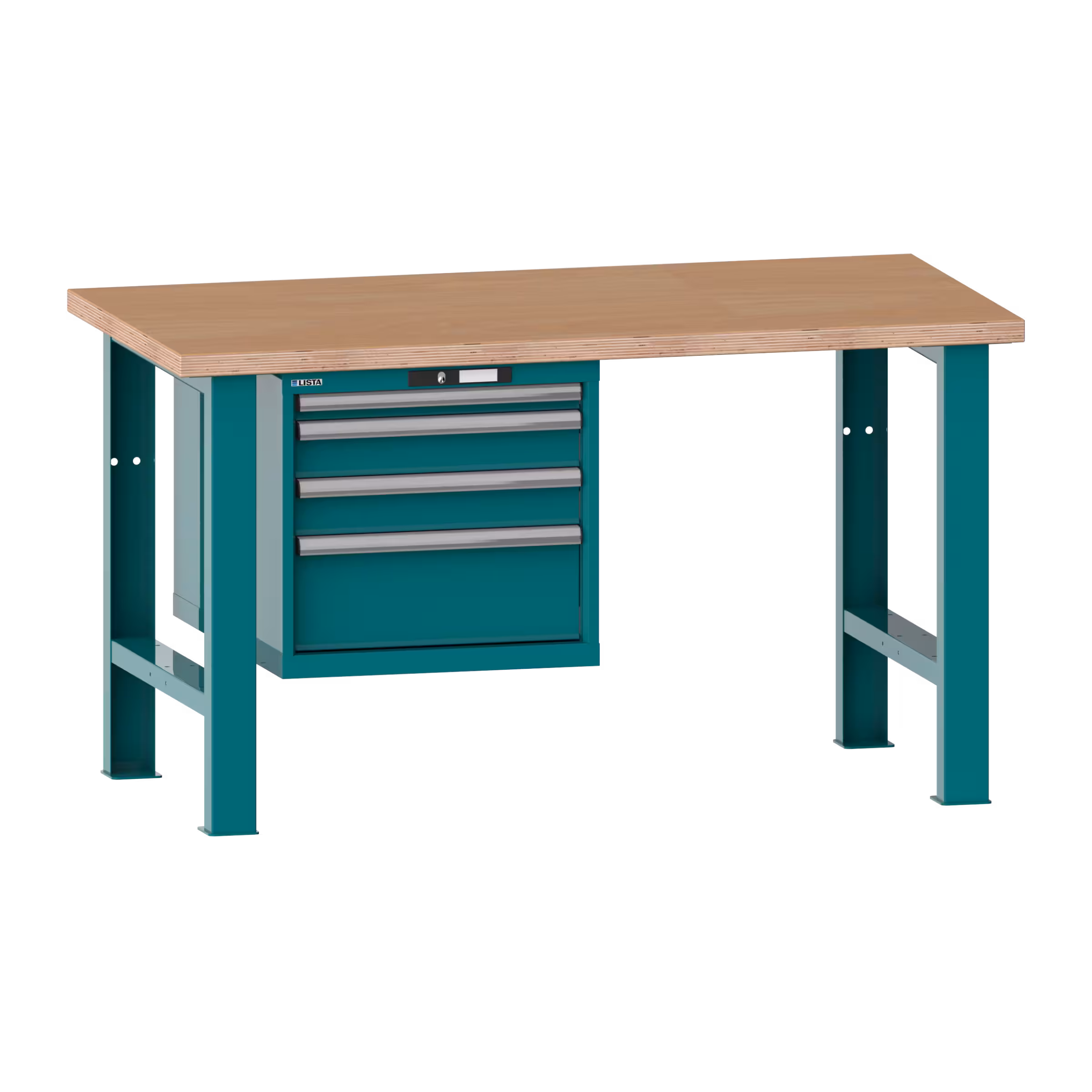 Établi 27x36E (LxPxH) 2000x750x890mm 4 tiroirs (1x50/2x100/1x200) 75kg multiplex RFID Lock Bleu turquoise RAL 5018