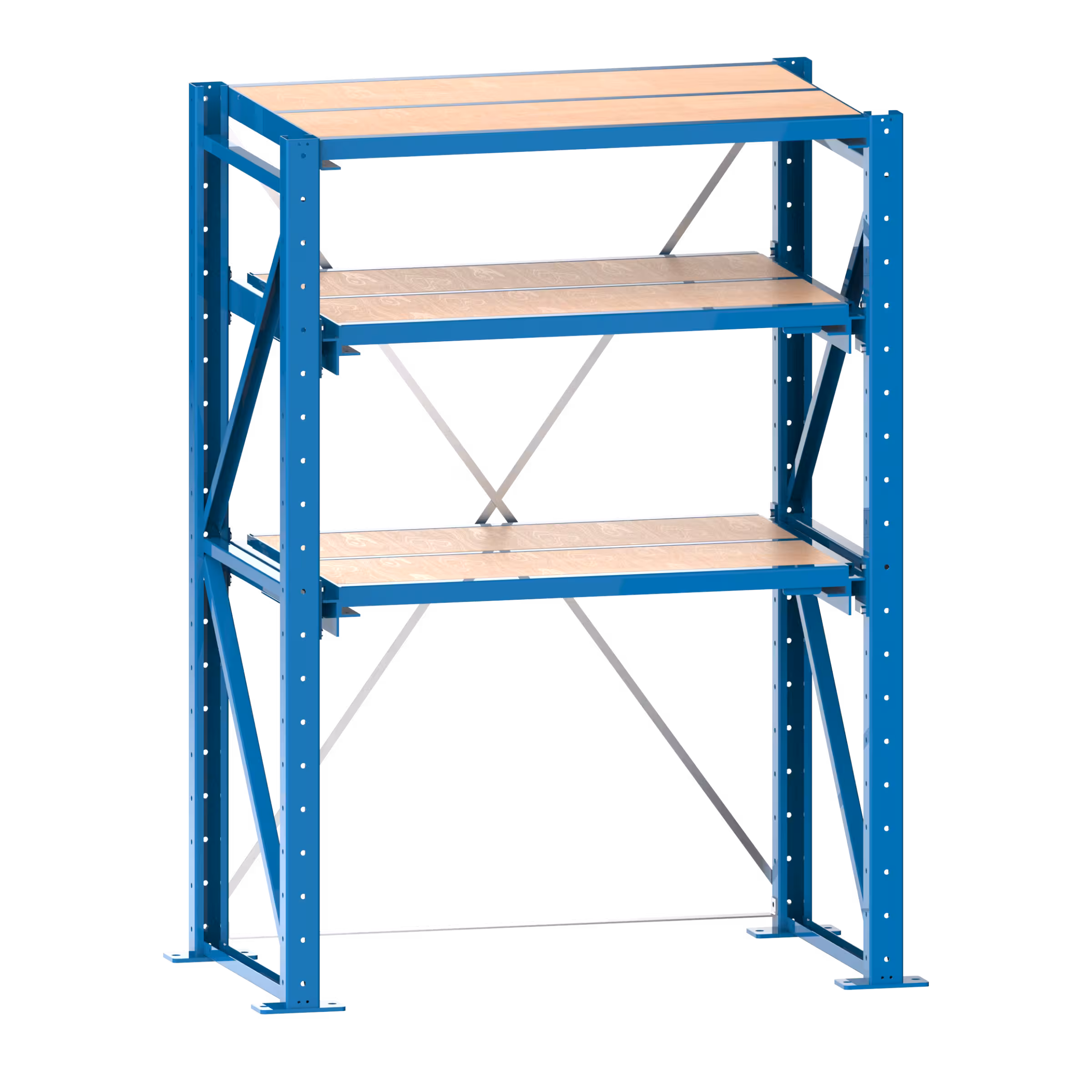 Rayonnage extensible à charges lourdes unité de base (LxPxH) 1290x1260x2000mm 1 cadre fixe, 2 cadres extensibles (800kg) Bleu clair RAL 5012